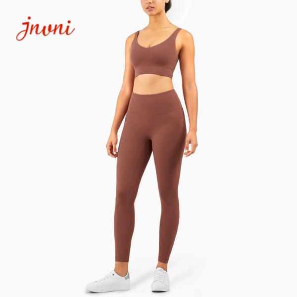 Fitness Women Lulu Naked Feeling Yoga V-neck Push Up Sports Bra High Waist Legging Gym Energy Set